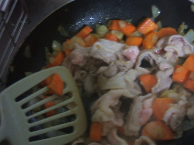 で、炒める。油ひいて中火~強火くらいで手早く手早く かつテキトーに・・・