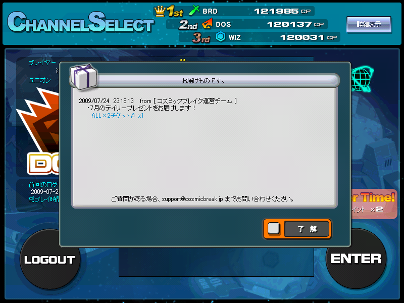 コズミックブレイクも毎日キャンペーン中なんだぜぃ(・ω・´)